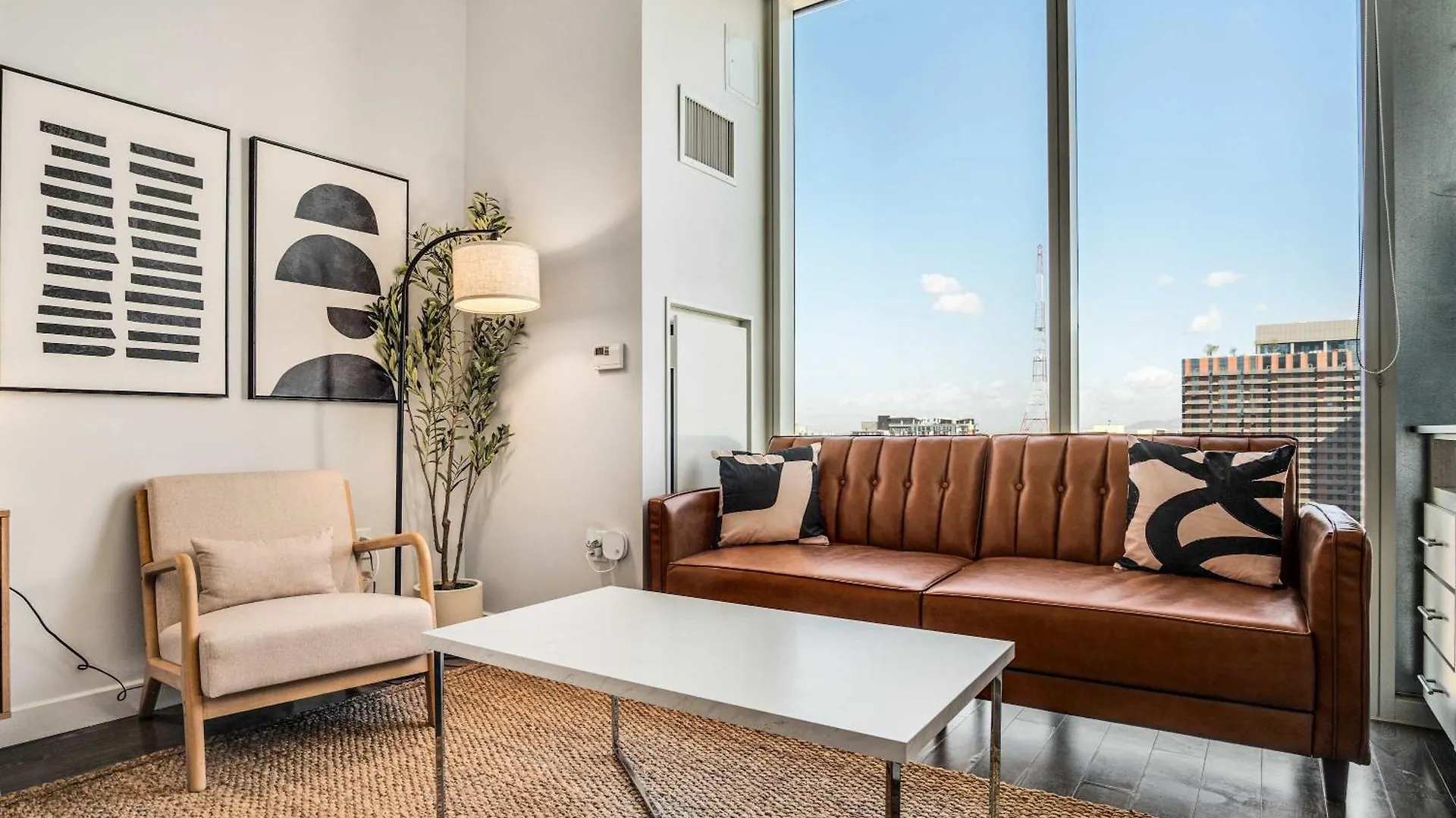 The 37 ft² Boulevard Stays Highrise Stu Sky Pool Parking Gym 21 Phoenix apartment welcomes travelers in the center of Phoenix, located approximately 15 minutes by foot from Burton Barr Central Library.